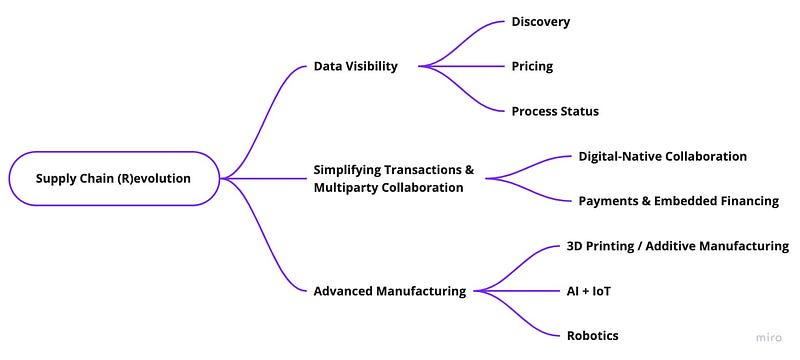 Simplifying Transactions & Multiparty Collaboration: Supply chains are inherently a chain of multiple parties conducting B2B transactions. As digital transformation has brought more workflows online, I believe there are startup opportunities to streamline the collaboration between these parties, who often still communicate via phone, email, or even fax machine (!!). Similarly, fintech infrastructure has come a long way and there are opportunities for startups to simplify transactions, automate laborious financial operations, and embed financing products to improve cash flow dynamics for both sides of a transaction. Crosslink has invested in financial enablement for the freight brokerage industry (Denim), an end-to-end industrial supply chain solution (GoExpedi), and a technology-enabled B2B marketplace for the lumber industry (Yesler), each with elements of this theme incorporated in their businesses.