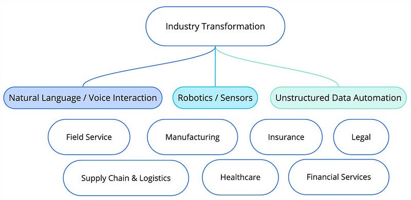 Natural Language / Voice-Based Interaction: Solutions that incorporate natural language or voice-based interaction have the opportunity to unlock productivity for workers in verticals that have previously been unaddressed by recent technology advancements. For workers that don’t spend their time in front of screens (i.e. field service, construction, manufacturing), taking actions hands-free will better fit their workflows and serve to maximize productivity.
