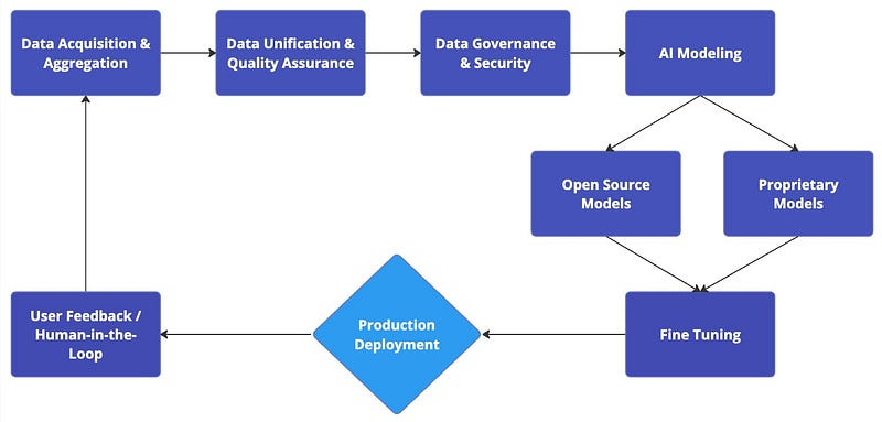 With the emergence of AI foundation models and generative AI, there is a lot of energy from companies both large and small in figuring out how to bring AI capabilities into existing and new applications. I’ve covered what I call the Data Assembly Line for the past couple of years, which is about how you take raw data, refine it, structure it, secure it, and take action on it for analytics and operational workflows. This current wave of AI adoption is a forcing function to streamline the data assembly line and incorporate both proprietary and open-source AI foundation models into a self-reinforcing data flywheel. There is a platform shift underway that leads companies to build their own AI Assembly Line to establish self-reinforcing data pipelines for an effective AI product strategy. Given the recent surge in accessibility and excitement around building AI applications, there is also a new class of customers that have previously been on the sidelines in participating in building novel data / AI applications that will bring new sources of budget and market opportunity to those innovating in this area.